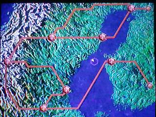 中央やや右付近に海があるため左右の陸地への移動がしづらいです。陸地は山岳、雪原、森林なのでやはり移動しづらいです。水陸機か飛行艦船があったほうがいいです。